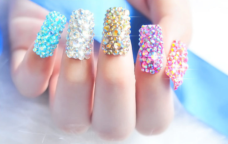 Multicolor Shinning Rhinestones, each bag contains 6 small bags, including 6 sizes of the same color rhinestones,total 14 colors available